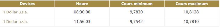 La deuxième cotation centrale USD/MAD, telle que publiée par Bank Al-Maghrib, à 11h52, fait ressortir la bande de fluctuation suivante :