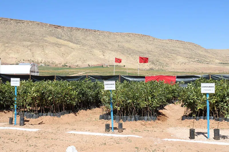 Le ministère de l’Agriculture a lancé la plantation de 300 ha de caroubier dans la province de Chichaoua, dans le cadre d’un projet d’agriculture solidaire qui porte sur la plantation de 500 ha de caroubier, 500 ha de cactus, 200 ha d’arbustes fourragers (Atriplex) et le développement de l’apiculture via la distribution de 200 ruches d’abeilles.