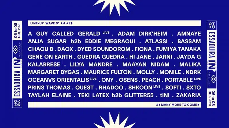 Les vendredi 6, samedi 7 et dimanche 8 octobre, le Sofitel Essaouira Mogador Golf & Spa accueillera les trois jours du festival avec pas moins de cinq scènes installées sur sa propriété et un line up qui mixe artistes marocains, portugais et internationaux.