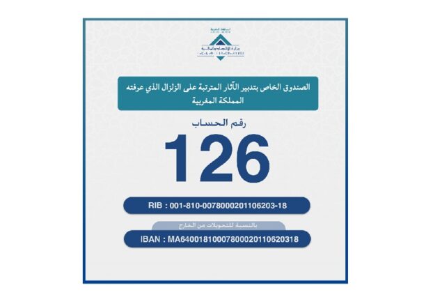 La Trésorerie générale du Royaume livre les détails du versement des contributions volontaires de solidarité au Fonds spécial numéro 126 pour la gestion des effets du tremblement de terre ayant touché le Royaume du Maroc.