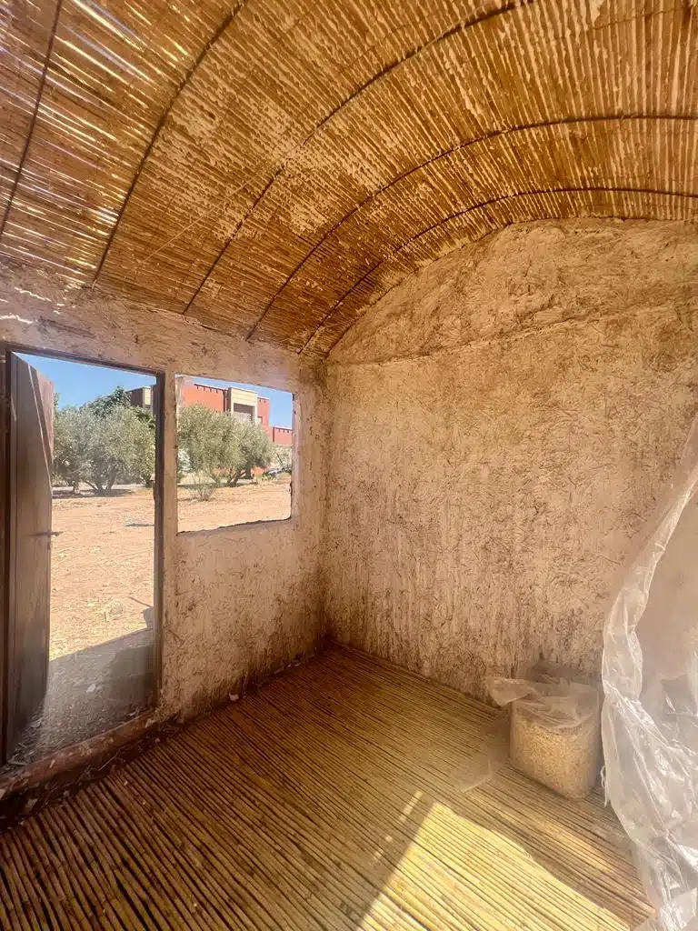 "Ces logements peuvent être construits en sept jours. Sur ces photos, ils en sont à quatre jours d’avancement. Ce sont des habitations de 16 m² de surface et de 3 m de hauteur. Il y a une grande chambre avec une porte et une fenêtre, comme un grand salon marocain. Toutes les maisons du monde méditerranéen commencent par une chambre."