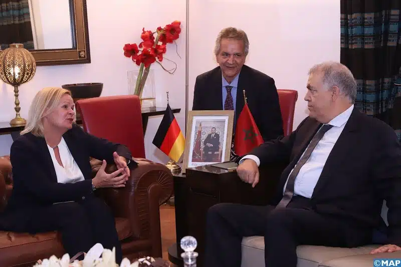 La ministre de l'Intérieur et du territoire de la République fédérale d'Allemagne, Nancy Faeser, a tenu, lundi 30 octobre à Rabat, une réunion avec le ministre de l'Intérieur, Abdelouafi Laftit, consacrée à l'examen des questions bilatérales d'intérêt commun et des moyens à même de renforcer la coopération sécuritaire entre les deux pays.