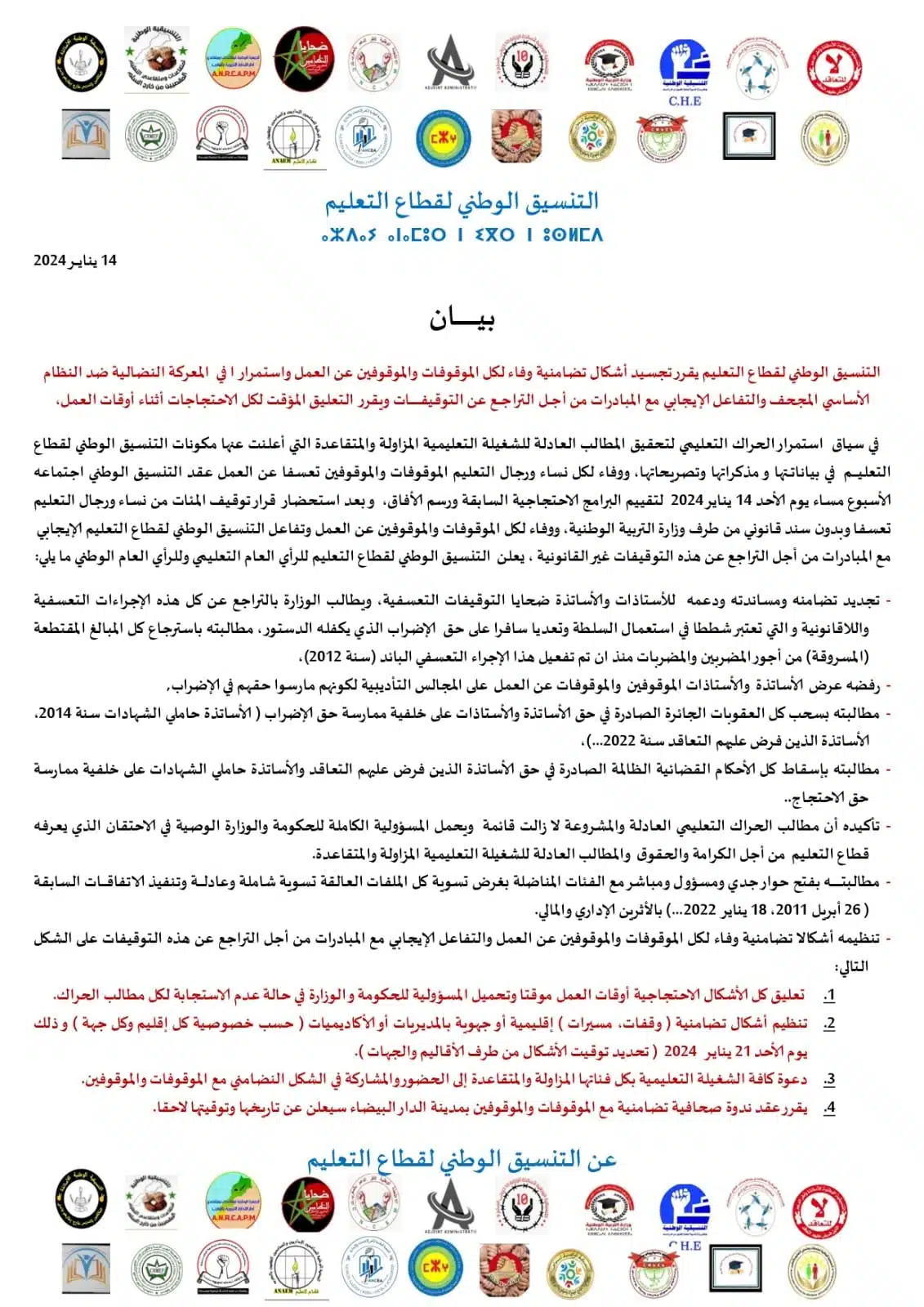 Elle organisera par ailleurs d’autres formes de manifestations (marches et sit-in) provinciales ou régionales au niveau des académies et des directions régionales, le dimanche 21 janvier prochain.