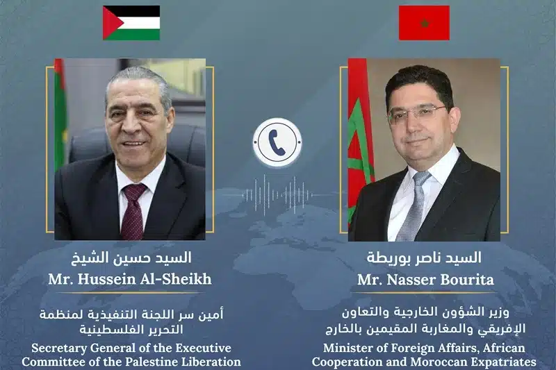 Le ministre des Affaires étrangères, de la coopération africaine et des Marocains résidant à l’étranger, Nasser Bourita, a eu, le lundi 12 février, un entretien téléphonique avec Hussein Al-Sheikh, secrétaire général du Comité exécutif de l’Organisation de libération de la Palestine (OLP).