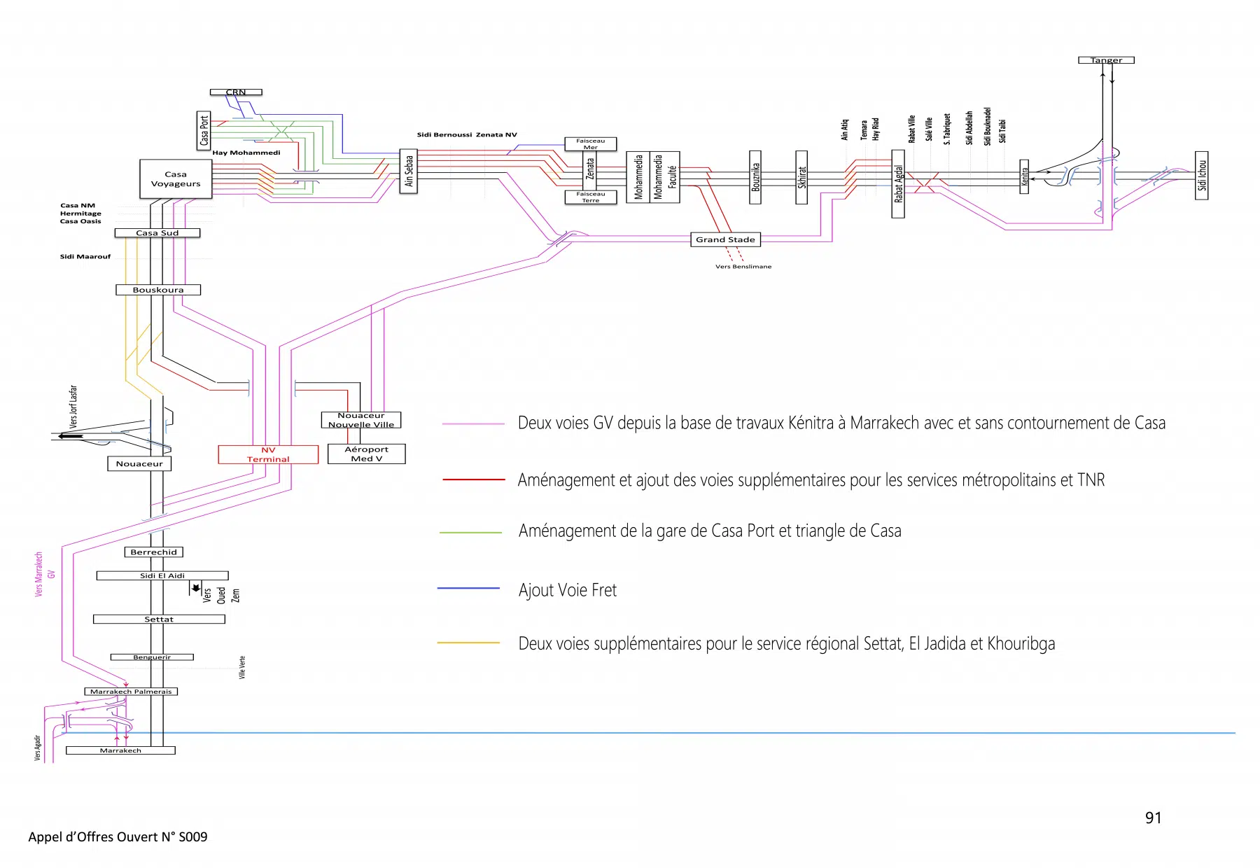 "Dans ce schéma, la ligne Kénitra-Tanger, en site propre, est une première partie. Les autres parties sont les projets de prolongation de Kénitra à Marrakech, puis de Marrakech à Agadir".