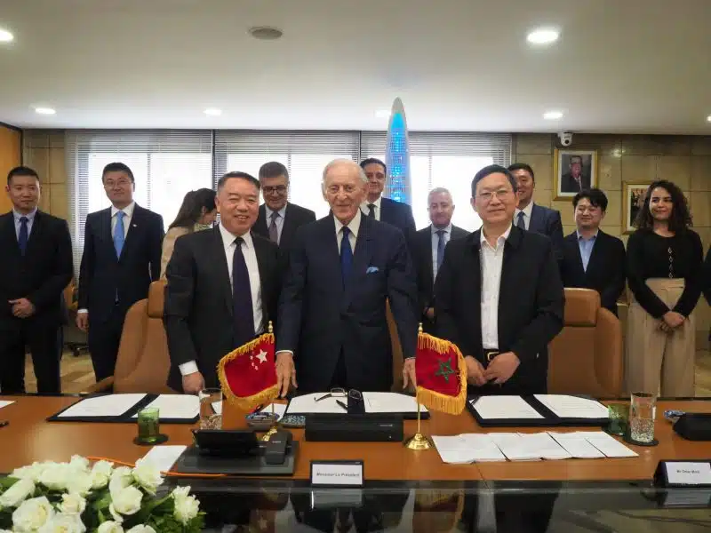 Cette signature, qui concrétise et officialise les projets des deux opérateurs chinois, est faite en présence, du côté marocain, de Othman Benjelloun, président de la Société d’aménagement de Tanger Tech ; Fouad Brini, président de TMSA ; Omar Moro, président de la région Tanger-Tétouan-Al Hoceima ; et du côté chinois, de Cao Jiangu, président de Hailiang, et de Pi Tao, président de Shinzoom.