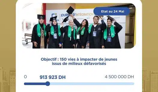 La fondation a pour ambition, cette année, d’atteindre un objectif de 150 boursiers et souligne que ce nombre dépendra de la contribution des entreprises et particuliers. Pour accompagner ces jeunes issus de milieux défavorisés, la fondation a besoin de 4,5 MDH. Au 24 mai, la fondation a déjà pu collecter 913.923 DH.