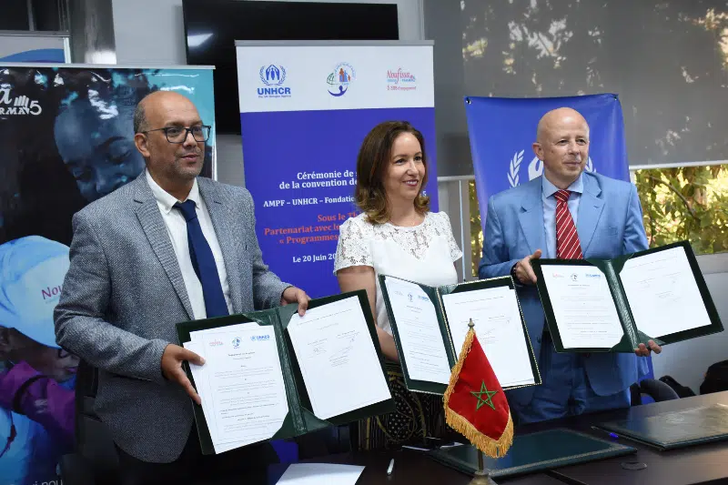 Cet accord de partenariat tripartite, signé par Yasmine Lahlou-Filali, vice-présidente de la Fondation Noufissa Pharma 5, François Reybet-Degat, représentant de l’UNHCR au Maroc, et Abdellatif Maamri, directeur exécutif de l’Association marocaine de planification familiale (AMPF), vise à renforcer le programme médical conjoint entre l’UNHCR et l’AMPF au profit des réfugiés.