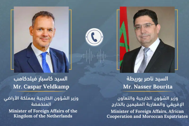 M. Nasser Bourita, ministre des Affaires étrangères, de la coopération africaine et des marocains résidant à l’étranger a eu, le mercredi 24 juillet, un entretien téléphonique avec le nouveau ministre des Affaires étrangères du Royaume des Pays-Bas, Caspar Veldkamp.