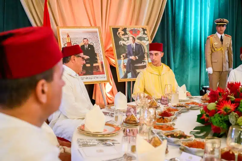 Ont été conviés à ce déjeuner, les présidents de la Chambre des représentants et de la Chambre des conseillers, les Conseillers du Roi, les membres du gouvernement, les présidents des instances constitutionnelles, les Officiers supérieurs de l’Etat-Major général des Forces armées royales, les membres du corps diplomatique accrédité au Maroc, ainsi que d’autres personnalités civiles et militaires.