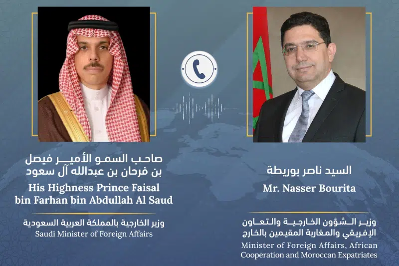 Le ministre des Affaires étrangères, de la coopération africaine et des Marocains résidant à l’étranger, Nasser Bourita, a eu, lundi 2 septembre, un entretien téléphonique avec le ministre saoudien des Affaires étrangères, le prince Faissal Ben Farhan Ben Abdullah.