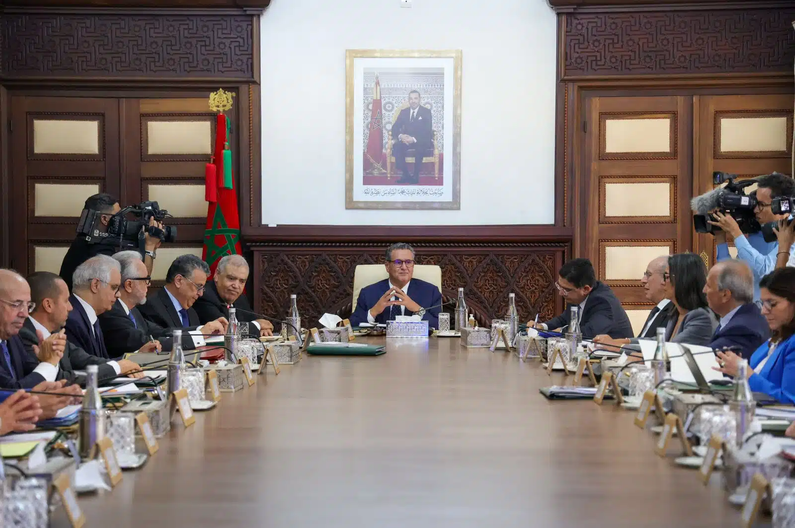 Ont pris part à cette réunion Abdelouafi Laftit, ministre de l’Intérieur, Nadia Fettah, ministre de l’Économie et des finances, Nizar Baraka, ministre de l’Équipement et de l’eau, Riad Mezzour, ministre de l’Industrie et du commerce, Karim Zidane, ministre délégué chargé de l’Investissement, de la convergence et de l’évaluation des politiques publiques, et Tarik Moufaddal, président directeur général de MASEN.