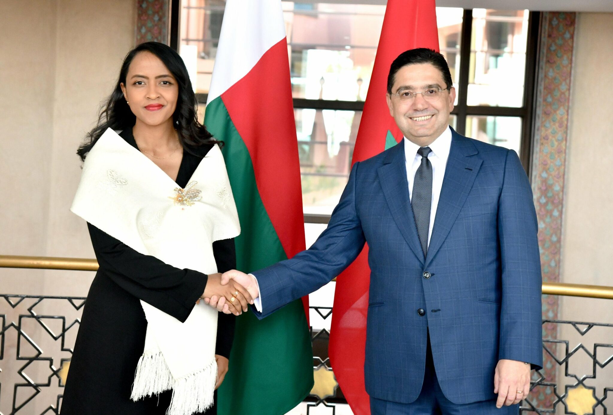 Nasser Bourita et son homologue malgache, Rasata Rafaravavitafika, à Rabat.