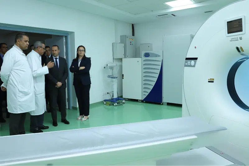 À cette occasion, le ministre et la délégation l’accompagnant ont visité les différentes installations et départements du CHU Mohammed VI, y compris le département de médecine nucléaire de l'hôpital d'oncologie et d'hématologie, où des explications ont été présentées sur l'évolution des services dans ces départements vitaux, en particulier après avoir été dotés d'équipements modernes, dont un pet-scan qui vient renforcer les équipements techniques de pointe disponibles au centre.