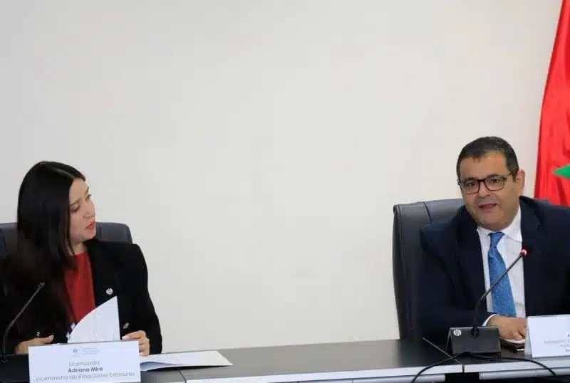 Cette rencontre s’est tenue en présence du chargé d'affaires de l'ambassade du Maroc à San Salvador, Brahim Baddi, de la directrice des Affaires américaines, Nezha Attahar, du directeur des questions globales, Ismail Chekkori, ainsi que du chef de la division de l’Amérique latine, Saloua Bichri.