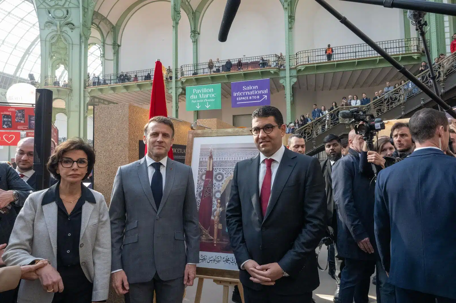 Après avoir salué les hymnes nationaux de la France et du Maroc, interprétés par la chanteuse marocaine Nabila Maan, Emmanuelle Macron a visité les différentes dépendances du pavillon marocain conçu comme un espace immersif célébrant la richesse et la diversité des écrivains marocains.