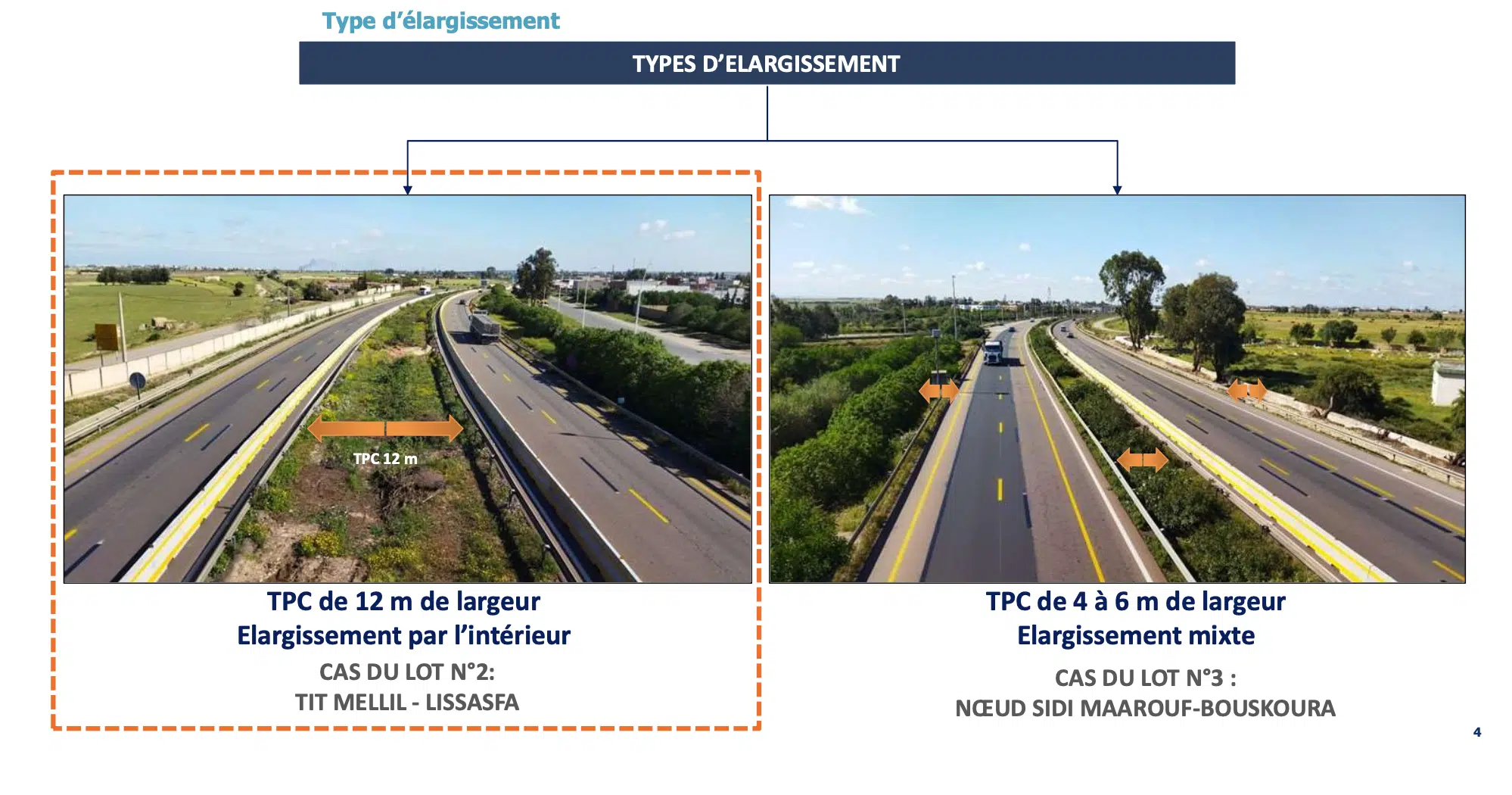 - le quatrième lot, qui consiste en l'élargissement de l'autoroute de Casablanca-Berrechid, depuis l'échangeur de l'aéroport de Casablanca jusqu'à celui de Berrechid, soit sur 11 km.