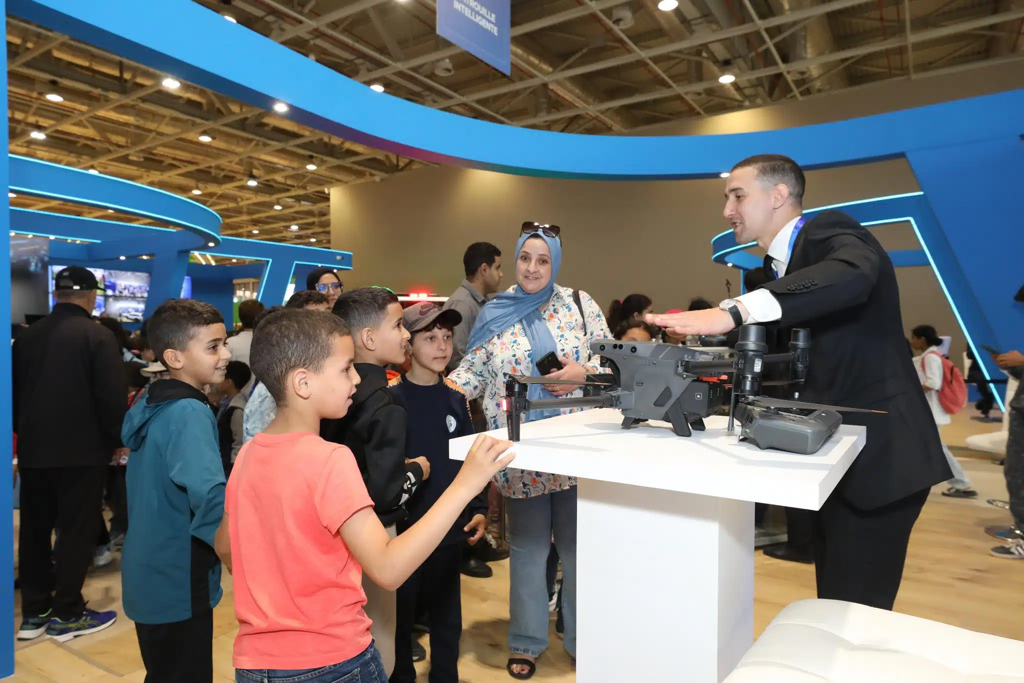 Les visiteurs ont ainsi pu découvrir les différents services assurés par l’institution policière, ainsi que les métiers et spécialisations du corps policier, notamment la police scientifique et technique, les unités d’intervention, les cellules d’accompagnement des femmes et des enfants victimes de violence, la plateforme Ibalagh de signalement des contenus numériques violents, ainsi que les métiers liés à la sécurité routière.