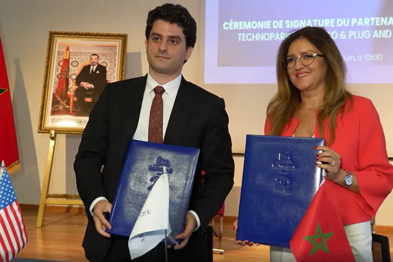 L’accord a été signé par Lamiae Benmakhlouf, directrice générale du Technopark, et Aziz El Hachem, directeur pour le Maroc et co-directeur pour l’Afrique de Plug and Play Tech Center. La cérémonie s’est tenue en présence de la ministre déléguée chargée de la Transition numérique et de la réforme de l'administration, Amal El Fallah Seghrouchni, et de Marissa D. Scott, consule générale des États-Unis à Casablanca.