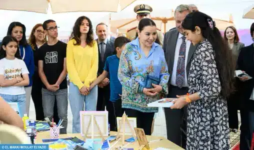 La Princesse Lalla Asmaa a également visité des ateliers animés par de jeunes élèves qui ont démontré leur ingéniosité, leur sens artistique et leur capacité d’innovation, à travers notamment un robot primé à un concours national, des œuvres d’art miniature d’une grande finesse et des peintures chargées d’émotion.