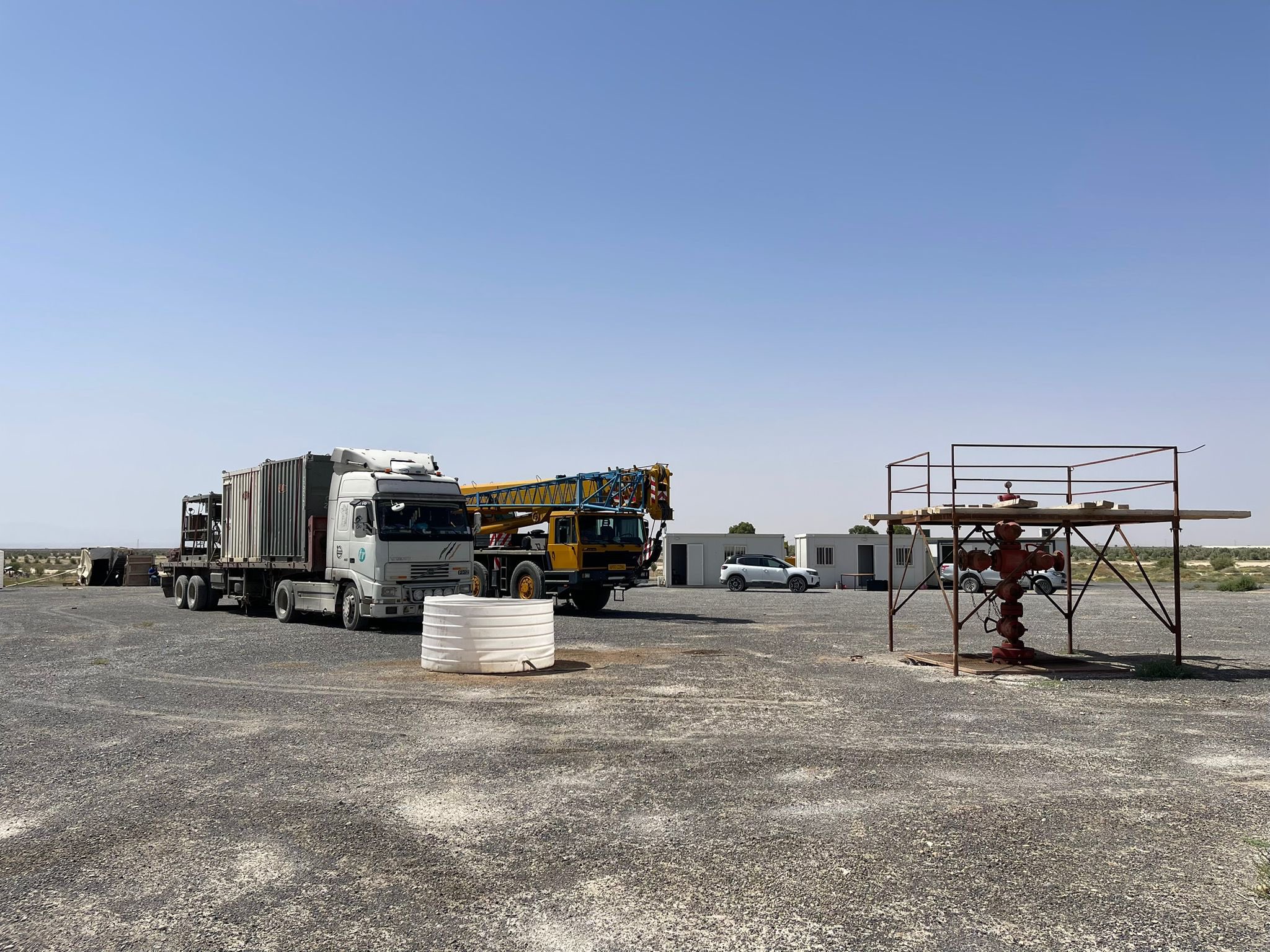 À ce jour, un réseau de tuyauterie est en cours de raccordement entre la sortie du puits (l'arbre de Noël) et l'équipement de test de puits de surface d'Itafluids, en vue de réaliser des tests sans plateforme.