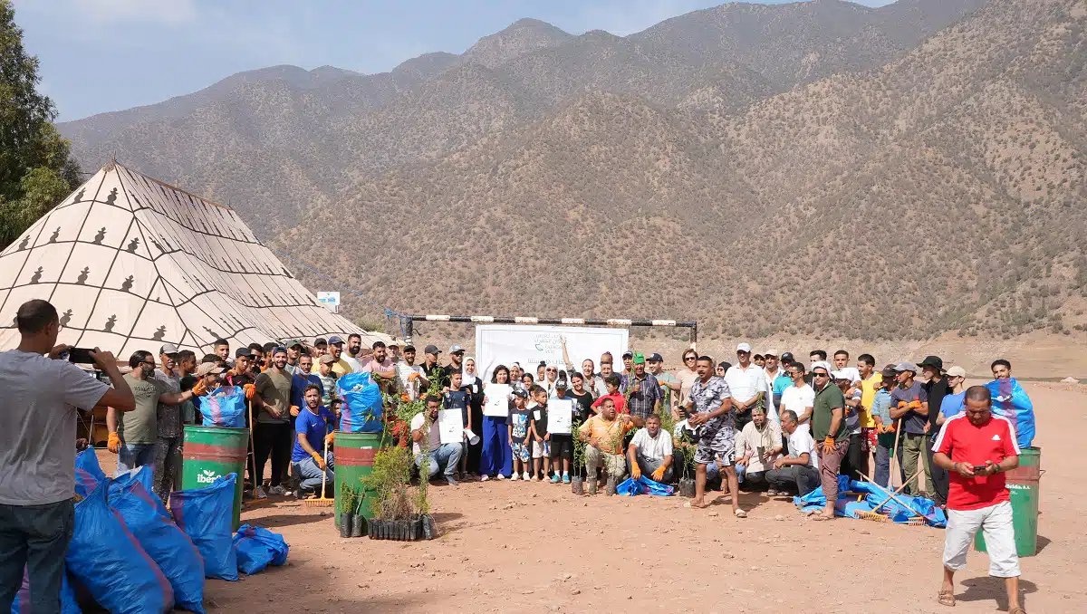 Le dimanche 24 août, Ouirgane a organisé sa première opération de nettoyage du souk et des abords du barrage Yaacoub El Mansour, avec plus de 100 sacs de déchets collectés et 400 arbres distribués aux habitants, dont une cinquantaine plantés autour du souk. L’initiative a mobilisé divers acteurs : l’association Afaq et Reda pour le matériel et les équipements, lassociationn Tamounte pour des ateliers éducatifs pour enfants, et les femmes du village, qui ont offert un petit-déjeuner à tous les participants.