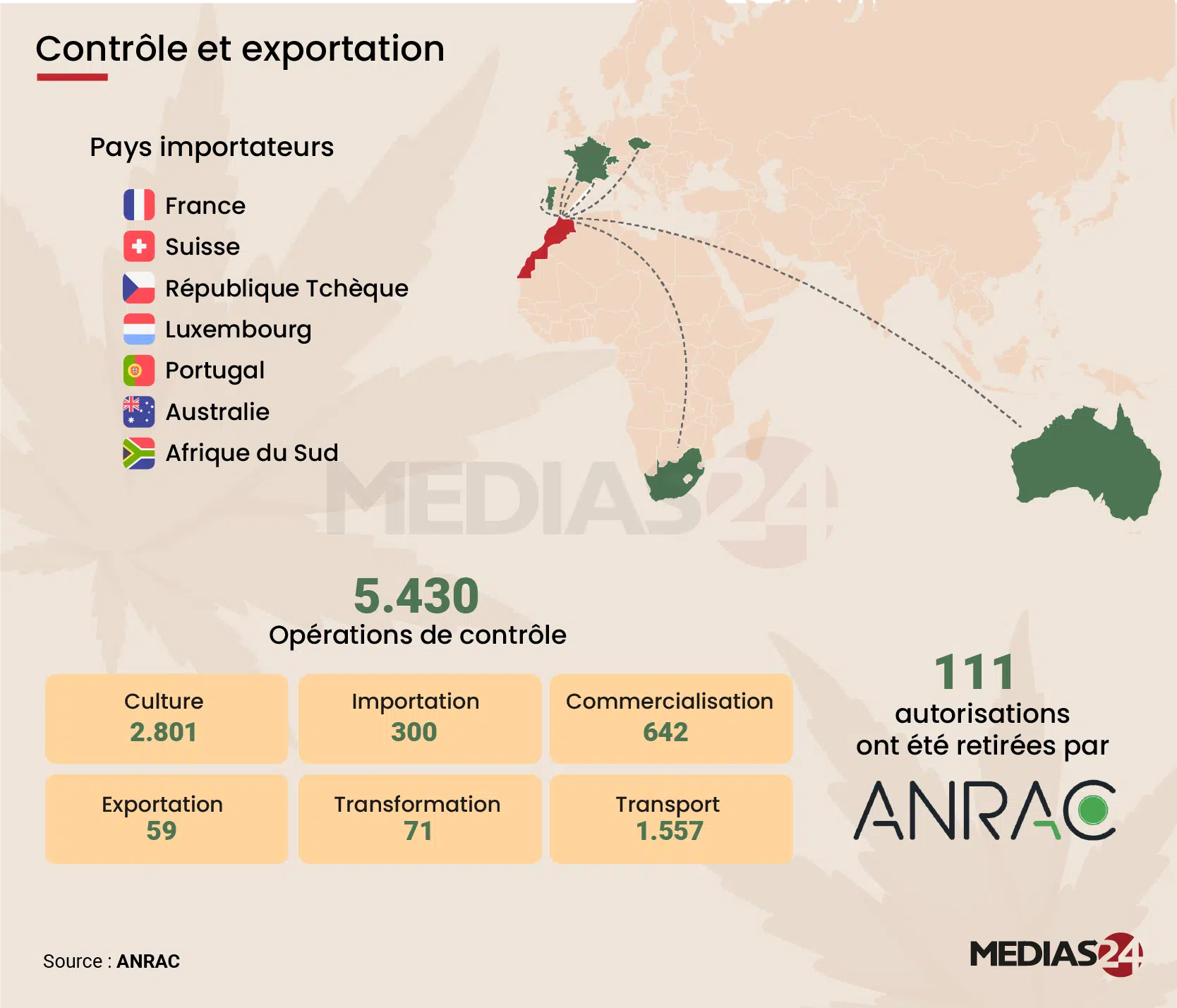 L'Agence a également exporté, en 2025, de la résine de cannabis vers plusieurs pays étrangers, notamment en :