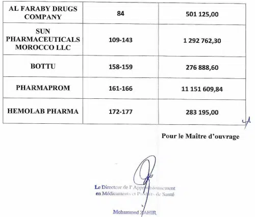 Cet appel d'offres a été lancé au mois de janvier par la Direction de l'approvisionnement en médicaments et produits de santé, relevant du ministère de la Santé (fac-similé du PV d'attribution ci-dessous, publié le 28 mai 2025).