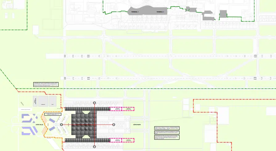 Le projet inclut également la construction d’une nouvelle piste et d'une nouvelle tour de contrôle. Le délai d’exécution est fixé à 40 mois, répartis en neuf sous-lots couvrant l’ensemble des corps d’état majeurs du projet, à l’exception des infrastructures aéronautiques, de la tour de contrôle, des aménagements extérieurs et des équipements spécifiques qui feront l’objet d’appels d’offres distincts.