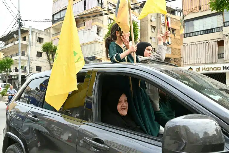 De temps à autre, un partisan du Hezbollah passe, agitant le drapeau jaune de la formation islamiste.