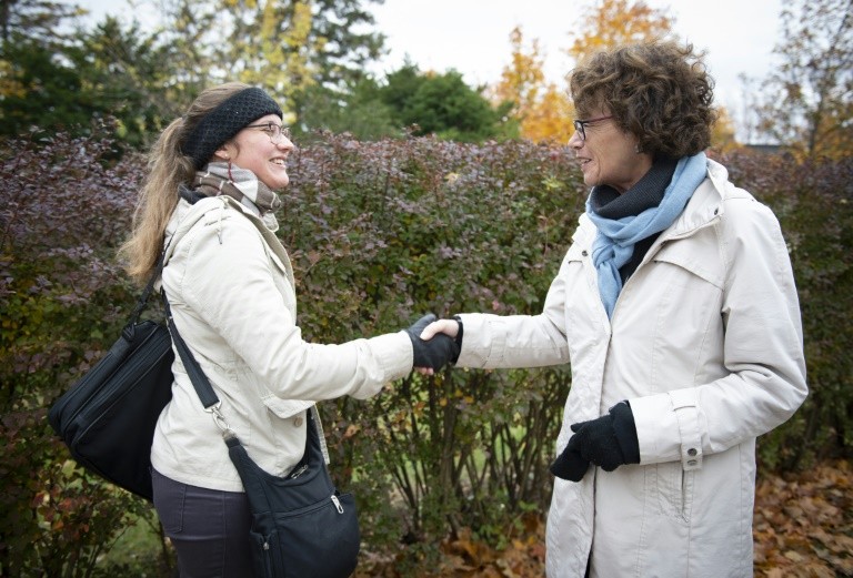 "J'ai voté pour vous lors du vote par anticipation!", lance avec enthousiasme Jézabel Blais, une jeune infirmière, à la candidate locale du Bloc, Louise Chabot, qu'elle vient de croiser par hasard.