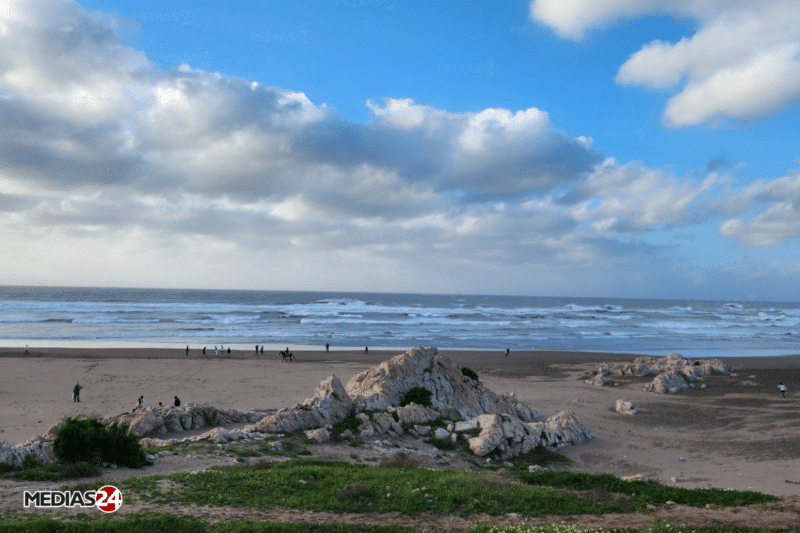Le sud et le centre du Maroc connaissent actuellement une hausse sensible des températures, avec des écarts dépassant les normales saisonnières de 5 à 10 degrés. Cet épisode, lié à l’activité du minimum thermique saharien, devrait se maintenir jusqu’au jeudi 16 avril 2026, avant un changement progressif des conditions météorologiques en fin de semaine prochaine, détaille la Direction générale de la météorologie. Dans le détail, les provinces du Sud, la région du Souss ainsi que les plaines intérieures du centre enregistrent des températures nettement au-dessus des moyennes habituelles. À Agadir et Guelmim, le mercure a ainsi atteint près de 33°C, soit un excédent thermique pouvant aller jusqu’à 10 degrés pour cette période de l’année. Cette situation s’explique par le renforcement du minimum thermique saharien, qui favorise la remontée de masses d’air chaudes et sèches en provenance du désert vers le sud et le centre du pays, jusqu’aux plaines situées à l’ouest de l’Atlas. Dans ce contexte, les températures maximales devraient osciller entre 37 et 40°C dans les provinces du Sud, et entre 30 et 36°C dans le Souss, les régions centrales et les plaines intérieures, au moins jusqu’à jeudi. Sur le plan des prévisions à court terme, le temps restera globalement stable en fin de semaine. Vendredi 17 avril 2026, des conditions relativement chaudes persisteront sur le Sud, le Souss et les plaines de Tadla et Rehamna, tandis que le reste du pays connaîtra un temps plus modéré. Des nuages bas avec brumes ou bruines locales sont attendus la nuit sur les côtes atlantiques nord et la Méditerranée, alors que des foyers instables pourraient se développer sur le Rif et les reliefs de l’Atlas, avec un risque d’averses parfois orageuses. Les températures varieront de 8 à 12°C sur les reliefs à 36-40°C dans les provinces du Sud. Samedi 18 avril 2026, la tendance restera inchangée avec une légère hausse des températures en journée sur les régions déjà chaudes. Les nuages bas et les formations brumeuses concerneront toujours les façades maritimes, tandis que des instabilités locales pourraient apparaître sur les reliefs. Dimanche 19 avril 2026, une nouvelle hausse des températures est attendue, notamment sur les provinces du Sud, le Souss et les plaines atlantiques nord. Les conditions resteront relativement instables sur les zones montagneuses, avec un risque d’averses orageuses locales, alors que des vents modérés pourraient provoquer des chasses de sable dans le Sud et la région de Tanger. Au début de la semaine du lundi 20 avril 2026, des nuages bas et des formations brumeuses continueront de se former près des côtes, tandis que des développements nuageux sur l’Atlas, le Rif et l’Oriental pourraient donner lieu à des précipitations localisées. À partir du jeudi 23 avril 2026, un changement de régime météorologique est attendu. Le temps deviendra progressivement plus instable, en particulier sur le nord et les reliefs, accompagné d’une baisse graduelle des températures. Des vents relativement forts sont également prévus sur les provinces du Sud, avec des épisodes de sable possibles. Cet épisode de chaleur, marqué mais temporaire, s’inscrit dans une dynamique printanière contrastée, entre remontées d’air saharien et perturbations attendues en fin de période.